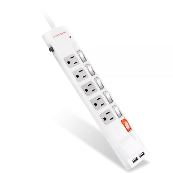 群加 PowerSync 包爾星克 六開五插防雷擊抗搖擺USB延長線-白2.7m