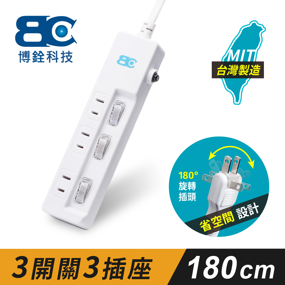【BC博銓】KTC-9833215A/1.8M/三開三插2孔 90度插頭