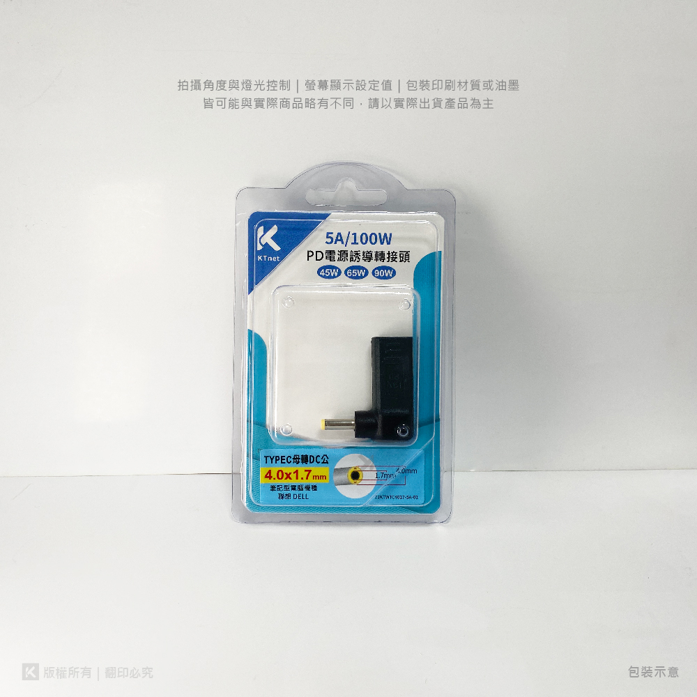 產品尺寸 : 32x10x36mm 產品重量 : 12.5g±5g 材 質 : PVC塑料 包裝尺寸 : 82x30x135mm 包裝內容 : 轉接頭x1 【PD 5A快充線連結】 https://b2b.ktnet.com.tw/Product.aspx?PID=KTYTCFF06E-1.2M&CID=34,40,029,052,02 注意事項 1.購買前請確認電源轉接DC頭內外徑尺寸符合您的需求 2.充電頭供電不足會造成時充時不充或斷充狀態 3.TYPEC-TYPEC線請選購5A+全智能晶片線材
