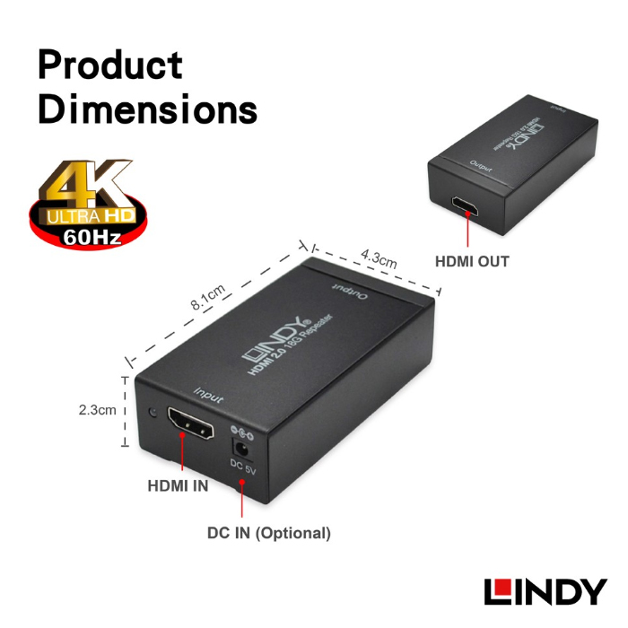 【LINDY】HDMI 2.0 訊號放大器(38210)