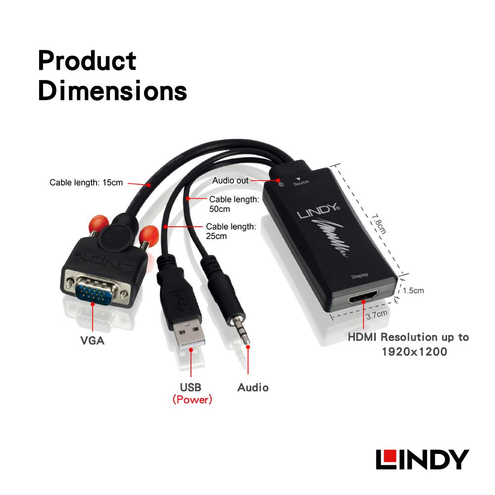 【LINDY】 VGA +音源 to HDMI 1080P轉接器