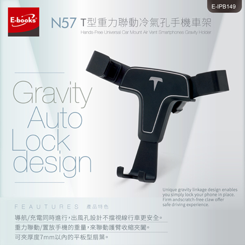 E-books N57 T型重力聯動冷氣孔手機車架 EBIPB149