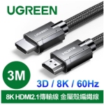 UG80404 / 名稱:綠聯 8K HDMI2.1傳輸線 面網編織版 3M