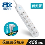 【BC博銓】KTC-636A 防雷擊15A/4.5M/六開六插3孔 90度插頭
