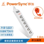 群加 PowerSync 包爾星克 6開5插2埠USB防雷擊抗搖擺旋轉延長線1.8M (TR529118)