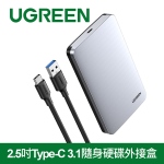UGREEN綠聯 2.5吋USB3.1 TYPE-C隨身硬碟外接盒(50743)