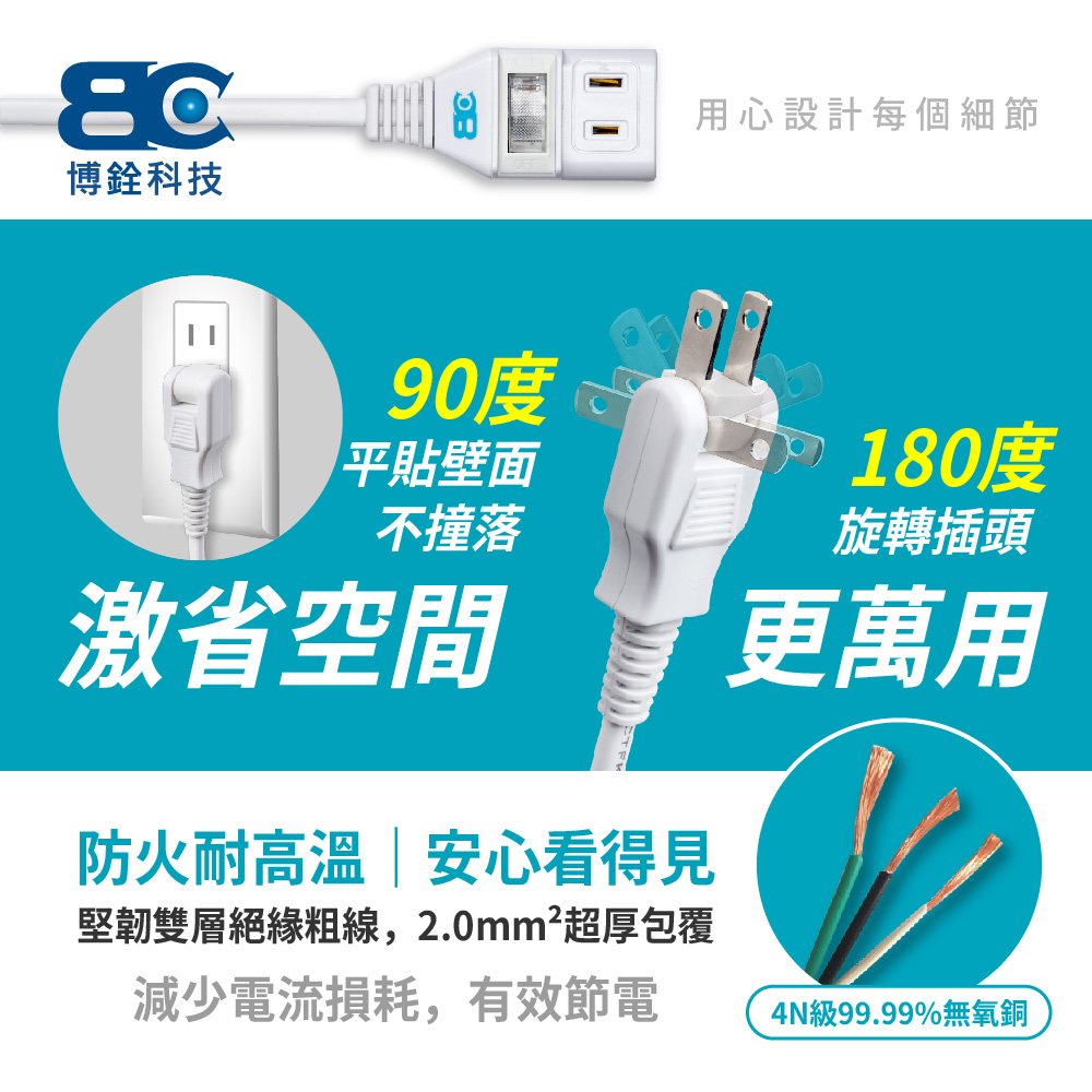 ◎180度任意轉向貼壁插頭:在狹窄的空間或細縫都可使用,無論牆壁邊、沙發下、冰箱旁…