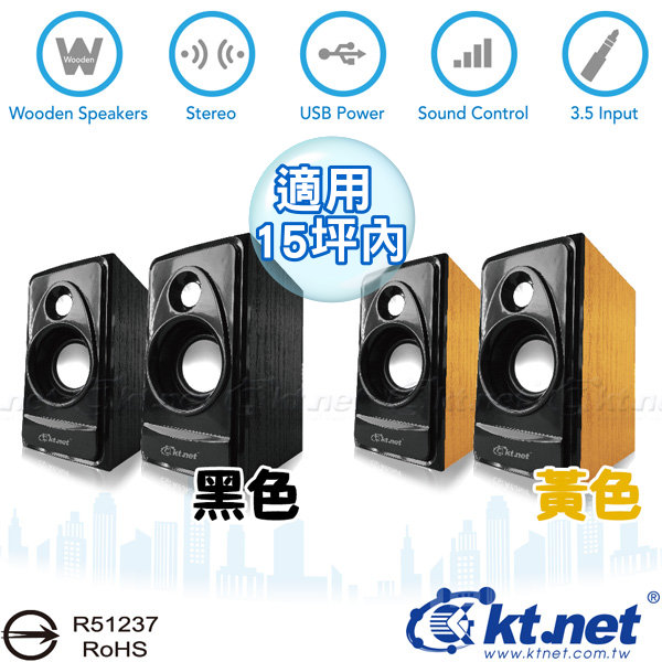 KTNET-Q5 木質二件式USB多媒體喇叭 黑
