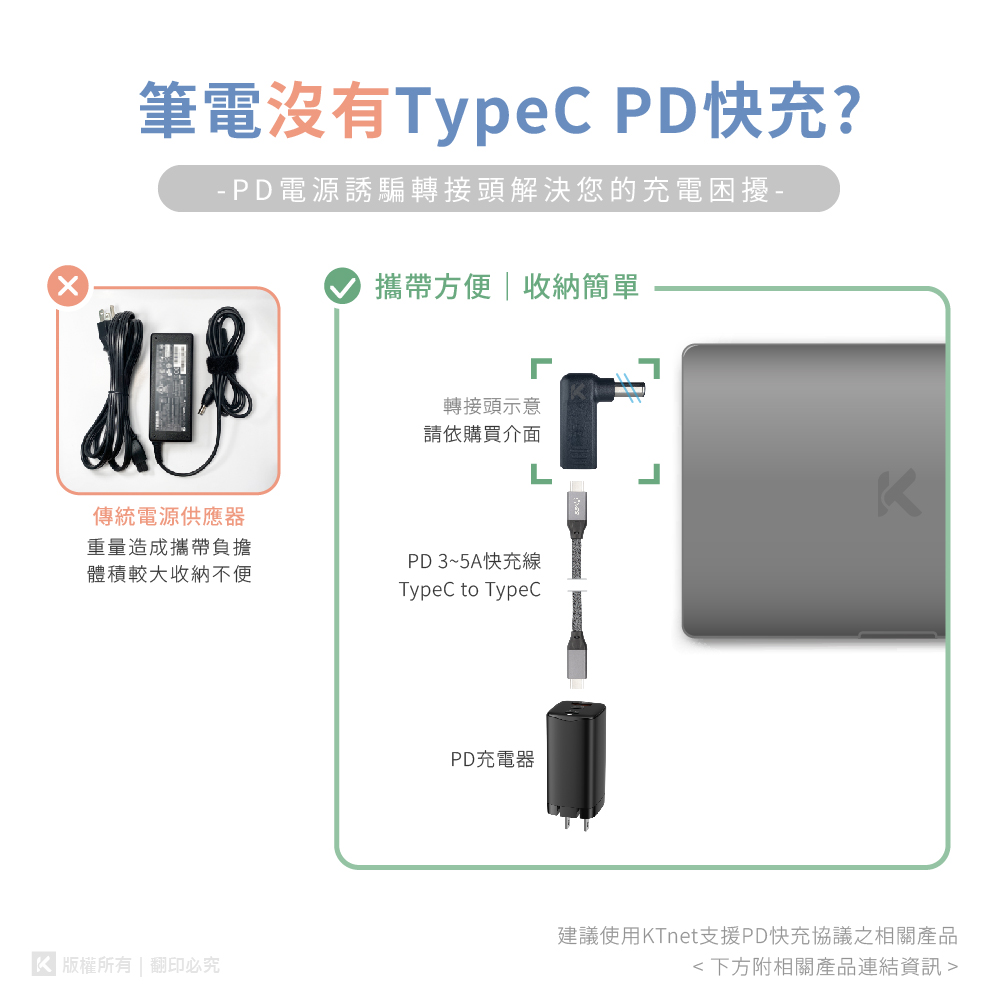 TC母轉DC公6.0*3.5 PD電源誘導頭 5A ASUS