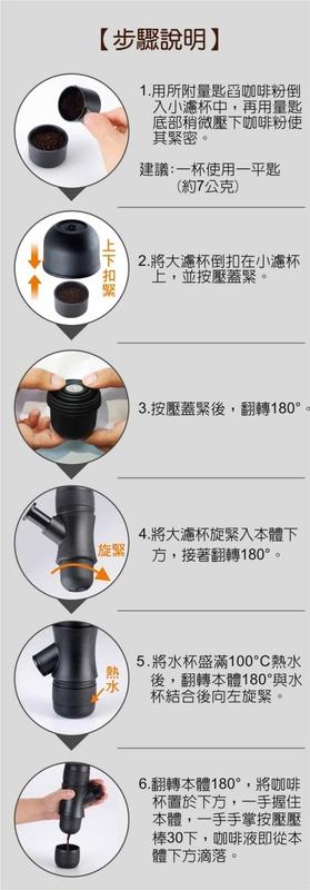 ◆採用手動加壓方式萃取咖啡,不用任何電力。