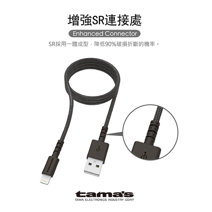 線材採用美國杜邦軍用材質抗拉抗扯,接頭SR加強抗彎曲