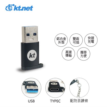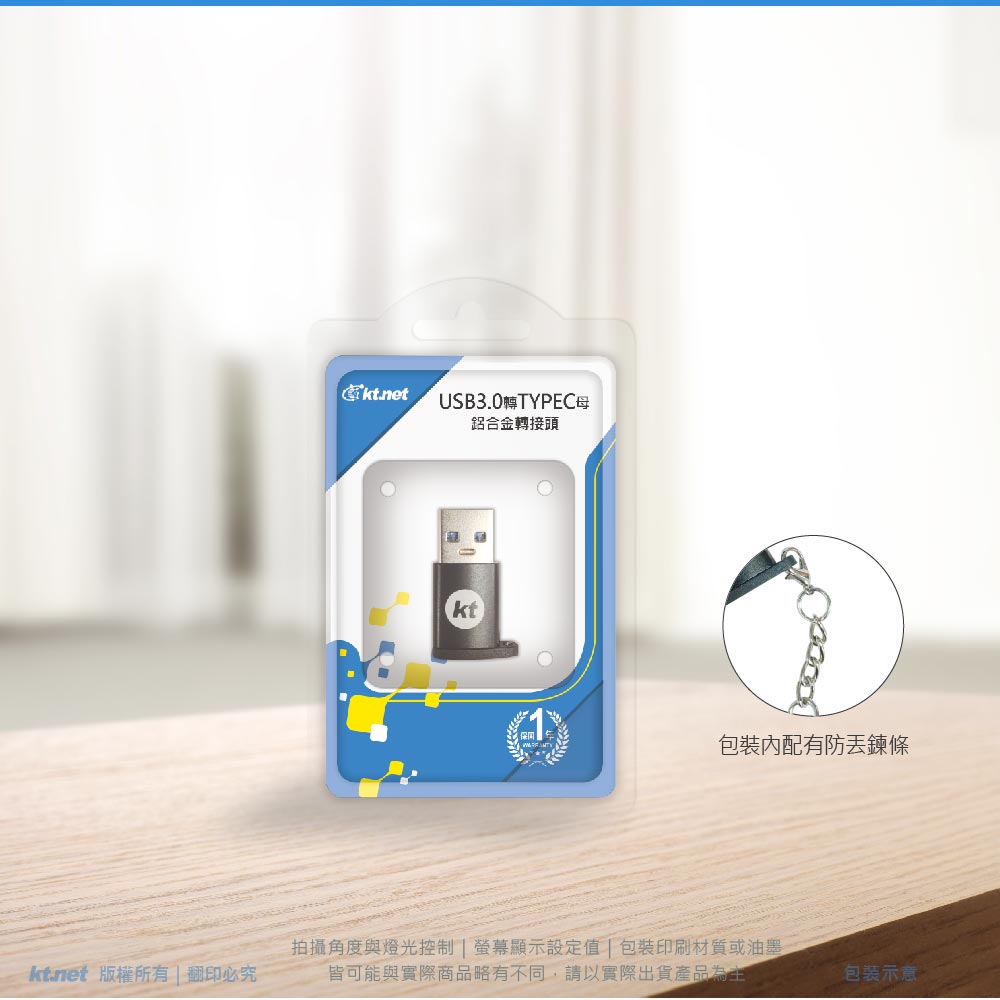KTNET USB3.0轉TYPEC母鋁合金轉接頭附鍊條 TYPEC轉接頭 USB3.0雙面插拔 即插即用