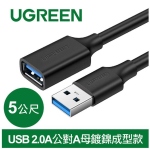 UGREEN綠聯 USB 2.0A公對A母鍍鎳成型款 圓線 黑色 5M
